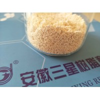 本产品是大孔结构的苯乙烯—二乙烯苯共聚体上带有叔胺基[-N(CH3)2]的离子交换树脂,其碱性较弱,能在酸性近 中性介质中有效地去除有机色素及无机酸及硅酸根,并能吸附分子尺寸较大的杂质以及在非水溶液中使用。该树脂具有再 生效率高、交换容量大、抗污染能力强、机械强度好的优点。