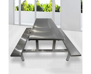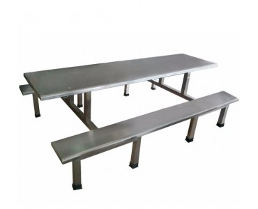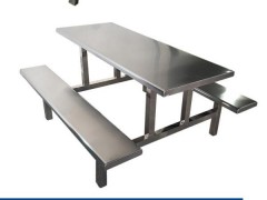八人位连体餐桌不锈钢制造防腐蚀性更强使用寿命更长。这款餐桌椅主要用的是大家都很熟悉的304不锈钢。这种材料挺结实的,平时不小心沾上油污或者水渍,用抹布擦一擦就很干净,不容易留下痕迹,用上几年看起来也还是比较新,打理起来不费事。