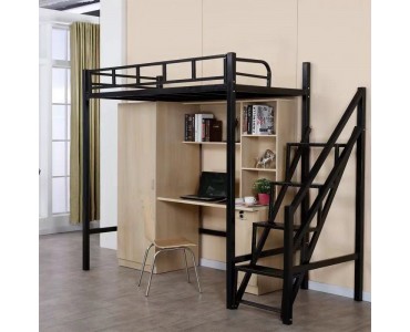 床体采用闭口型材工艺制造,整体结构呈现出规整的形态。床铺由五根支撑骨架承托,这些骨架通过焊接工艺与主体框架紧密连接,这种构造方式有助于保持床体的结构稳定性。踏步爬梯的设计充分考虑了使用的便利性,台阶之间的间隔经过合理规划,便于日常使用。