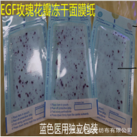 膜布细腻光骨与紧致,服帖,补水保水,使用后肌肤呈现健康白皙,令肌肤细胞透气平衡紧致,淡化皱纹。促进创伤愈合作用,用于修复痘印,痘坑,美白提亮,改善暗沉,增强补水保湿。坑氧化,改善皮肤松弛等作用,长期使用可以延缓肌肤衰老,修复受损细胞,增强肌肤抵抗力,降低肌肤敏感频率。亮白肌肤,初的透亮白,此款冻干粉面膜,零添加,零防腐。适合各类肌肤使用。浸泡纯净水后,面部出现满满EGF精华和玫瑰花瓣。真实材料品质看得见。