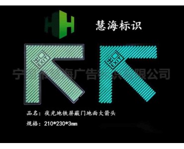 《建筑设计防火规范》(GB50016-2006)中明确规定,总建筑面积超过500㎡的地下、半地下商场必须安装消防疏散指示标志。 地铁蓄光自发光导向标示,夜光不锈钢箭头,304不锈钢夜光箭头主要标志: