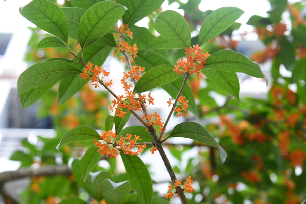 随处可见绿叶满枝的桂花树,密的、稀的、高的、矮的……小小米粒一样的花儿,像一个个精灵般抱团成簇,银桂、丹桂、金桂、四季桂,交相辉映,形成一道道靓丽的风景线。