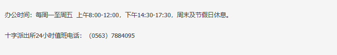 提示:安徽省郎溪县十字镇派出所24小时值班电话信息来源于郎溪县政府网站公开之内容,整理转载此文是出于传递更多便民服务信息之目的。若有来源标注错误或者其它差错或侵犯了您的合法权益,请与本网站联系,我们将及时更正、删除。以上内容如有变更,以相关部门的更新内容为主。谢谢。