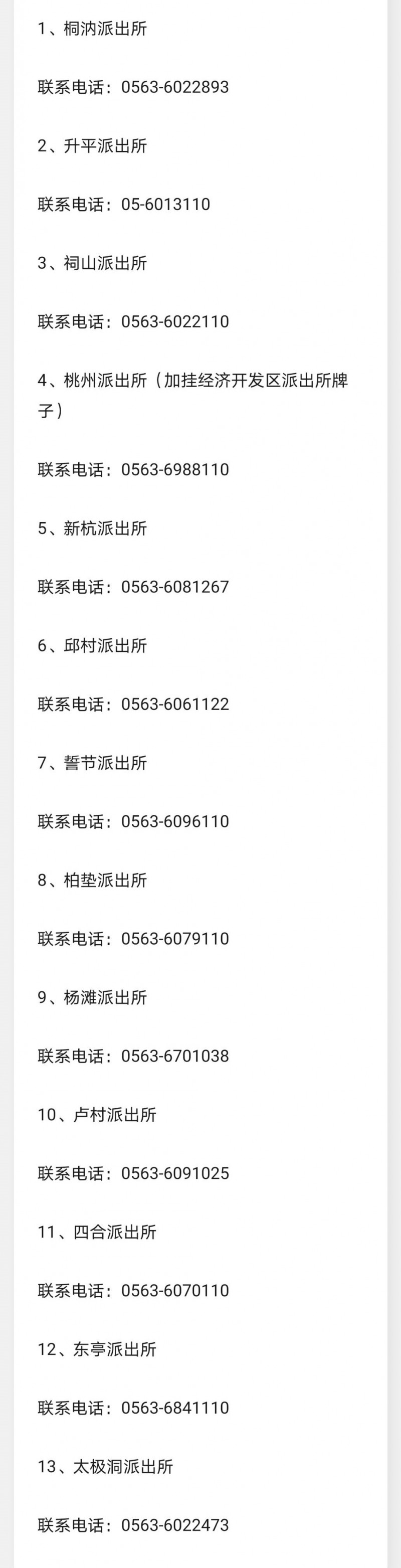 安徽省广德市辖区派出所联系电话号码名录大全: