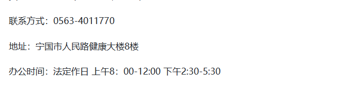提示:宁国市民政局婚姻登记处联系电话和地址信息来源于宁国市政府网站公开之内容,整理转载此文是出于传递更多便民服务信息之目的。若有来源标注错误或者其它差错或侵犯了您的合法权益,请与本网站联系,我们将及时更正、删除。以上内容如有变更,以相关部门的更新内容为主。谢谢。