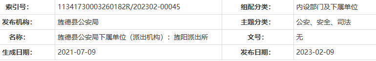 便民信息公开:旌德县旌阳派出所办公电话是多少。