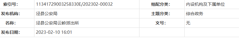 安徽泾县云岭派出所机构职能简述: