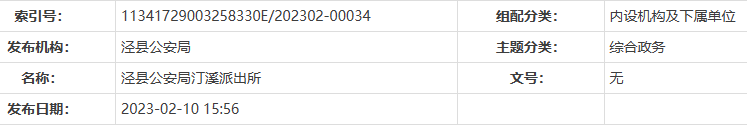 便民服务黄页:安徽泾县汀溪派出所联系电话号码