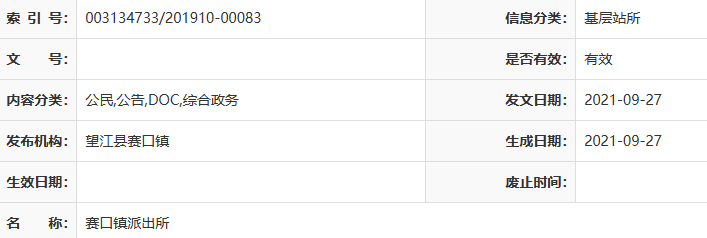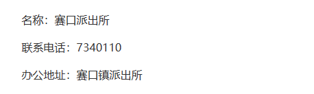 提示:望江县赛口镇派出所联系电话号码信息来源于望江县主管部门公开之内容,整理转载此文是出于传递更多便民服务信息之目的。以上信息仅供参考,由于时间及其他方面的原因可能会发生变动,不准确之处请原谅!若有来源标注错误或者其它差错或侵犯了您的合法权益,请与本网站联系,我们将及时更正、删除。以上便民信息内容如有变更,以相关部门的更新内容为主。谢谢。