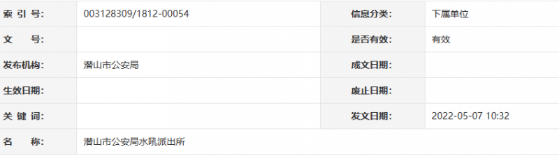 备注:潜山市水吼镇派出所对外联系电话号码信息来源于潜山市政府网站公开之内容,整理转载此文是出于传递更多便民服务信息之目的。以上信息仅供参考,由于时间及其他方面的原因可能会发生变动,不准确之处请原谅!若有来源标注错误或者其它差错或侵犯了您的合法权益,请与本网站联系,我们将及时更正、删除。以上便民信息内容如有变更,以相关部门的更新内容为主。谢谢。
