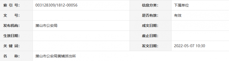 安庆潜山市黄铺镇派出所对外联系电话号码信息公开: