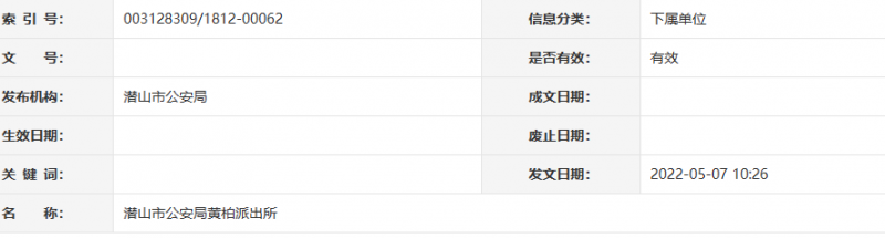 基层派出所便民信息:潜山市黄柏镇派出所联系电话号码。
