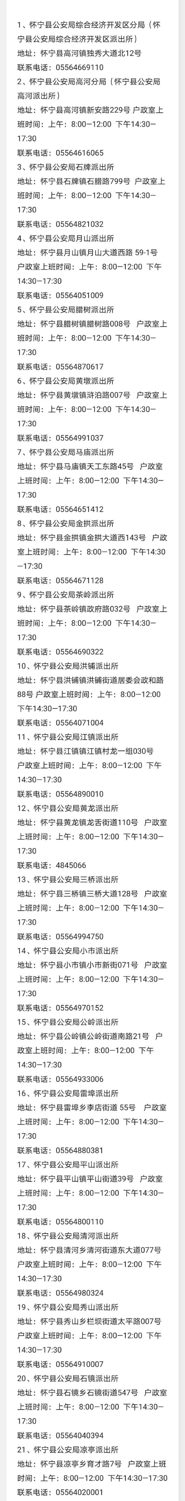 关于安庆怀宁县各派出所办公联系电话号码及办公地址信息一览表的提示:1,信息的源处为当地政府主管部门网站公开之内容,在这里整理及转发的唯一目的是为社会提供更多的便民利民网络信息。互联网的存在,让我们多了一个方便快捷的信息渠道,也是公共服务信息发布的渠道。