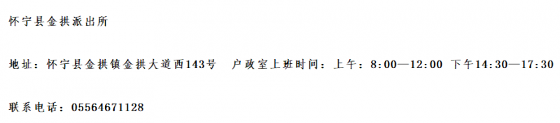 便民电话簿:安庆怀宁县金拱派出所对外办公电话号码。