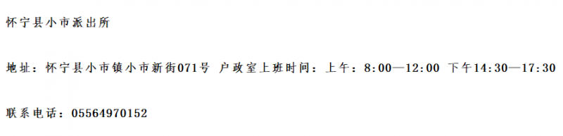 安徽基层派出所服务信息:怀宁县小市镇派出所的办公电话号码。