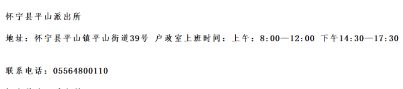 便民通讯簿:怀宁县平山镇派出所的办公电话号码。