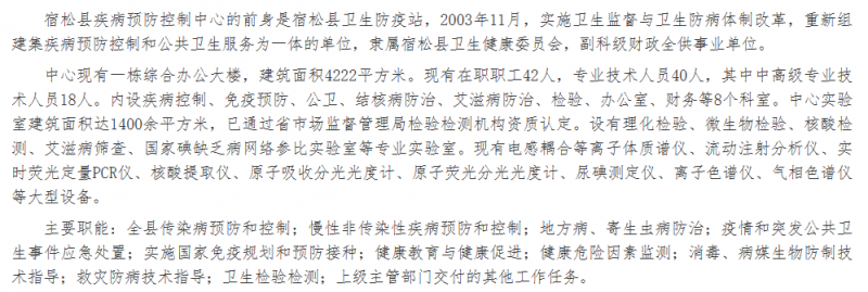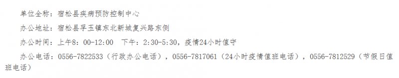 便民黄页:宿松县疾病预防控制中心办公电话号码和单位地址。