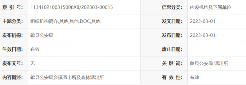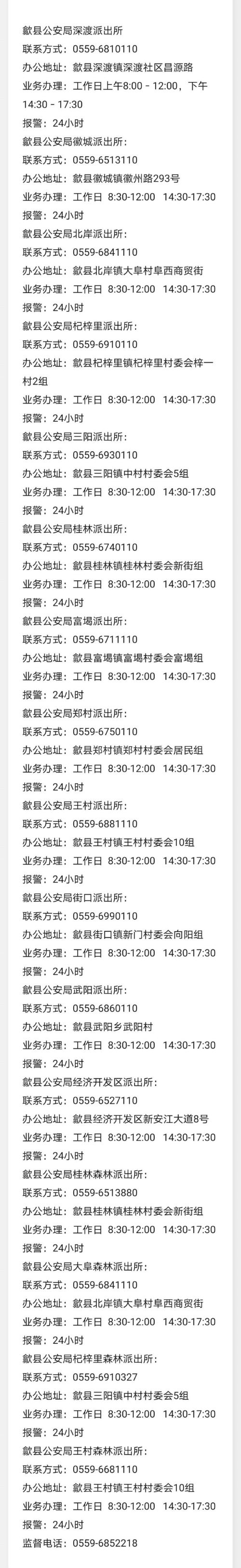 安徽黄山市歙县乡镇派出所及森林派出所联系电话及办公地址: