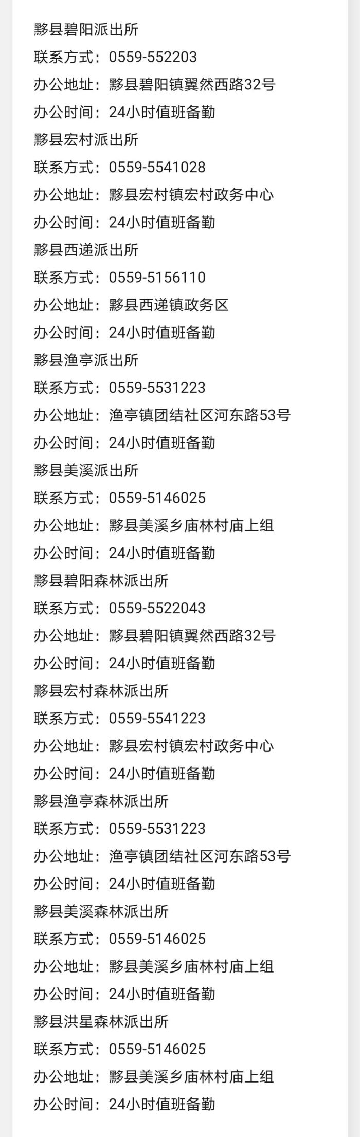 安徽黟县辖区派出所联系电话及机构地址信息一览表: