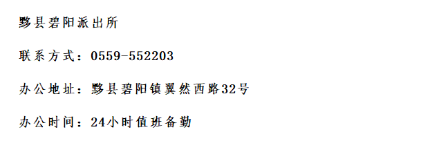 便民黄页:安徽黟县碧阳派出所办公地址和联系方式。
