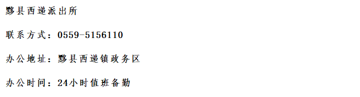 便民电话黄页:黄山市黟县西递派出所办公电话及办公地址。