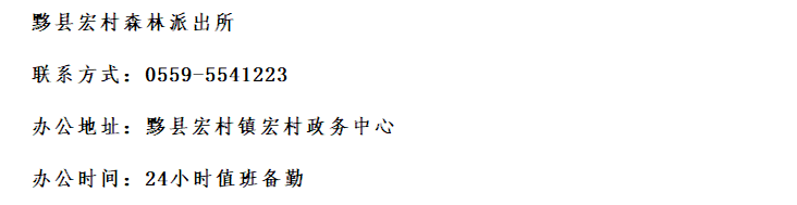 黄山黟县宏村森林派出所的办公地址和联系方式:
