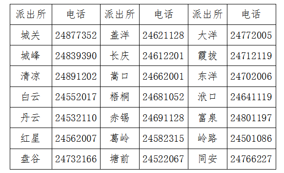 福州市永泰县辖区派出所户籍咨询电话号码大全表: