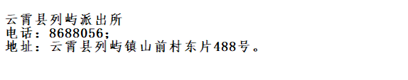 基层派出所信息公开:福建云霄县列屿派出所值班电话号码是多少。