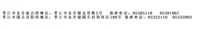 晋江市金井派出所和围头边防派出所办公地址和值班电话: