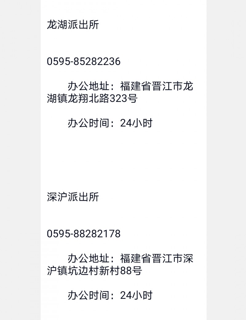 福建晋江市龙湖派出所、深沪派出所联系电话号码是多少:
