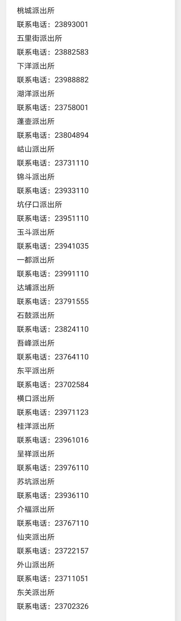 便民黄页:泉州永春县辖区派出所户籍业务咨询服务电话一览表。