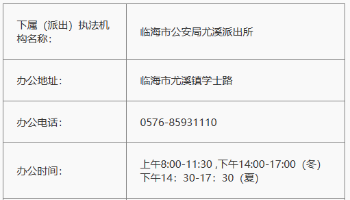临海市尤溪派出所办公地址和办公电话: