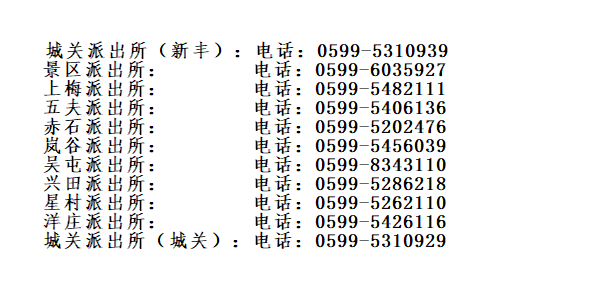 武夷山市各辖区派出所户籍窗口咨询服务电话号码大全表:
