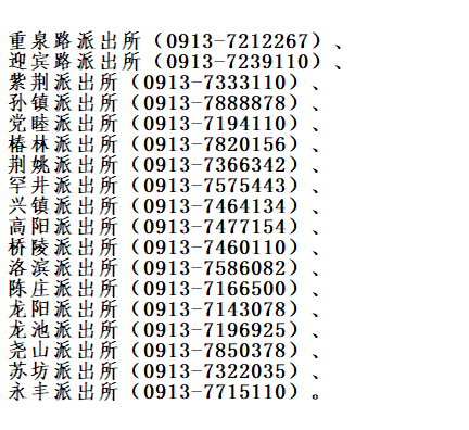 说明:关于蒲城县各派出所联系电话号码大全表的信息作出免责说明,本信息发布的目的仅为向公众提供更多的便民利民服务,是建立在公共服务信息基础上的公益信息传播,其信息来源于蒲城县政府网站的公开内容。信息不排除因随着时间或者相关情况发生原因而发生变化变更,所以本信息仅作参考。本信息旨在通过网络提供更多相关便民利民服务信息,本信息的真实性以相关部门正式披露信息为准。如有错误之处或者如有侵权,请及时联系本网站客服,定会及时修改或者删除。