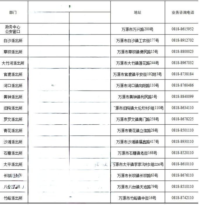 免责声明:关于四川万源市各个派出所户籍窗口联系电话号码大全表的信息作出免责声明。