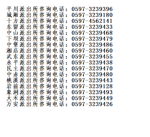 龙岩市武平县各辖区派出所户籍业务咨询电话号码大全表:
