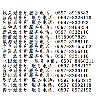 连城县各个基层派出所户籍窗口联系电话号码大全表:
