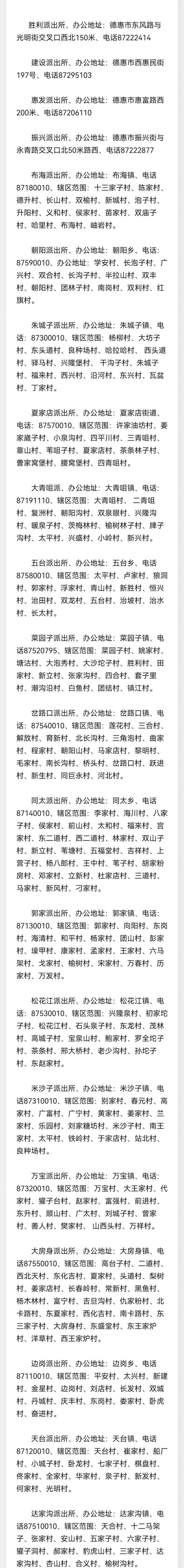 吉林德惠市各辖区派出所办公电话地址及管辖区域信息大全表: