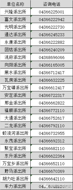 洮南市各辖区派出所户籍业务咨询服务电话号码大全表: