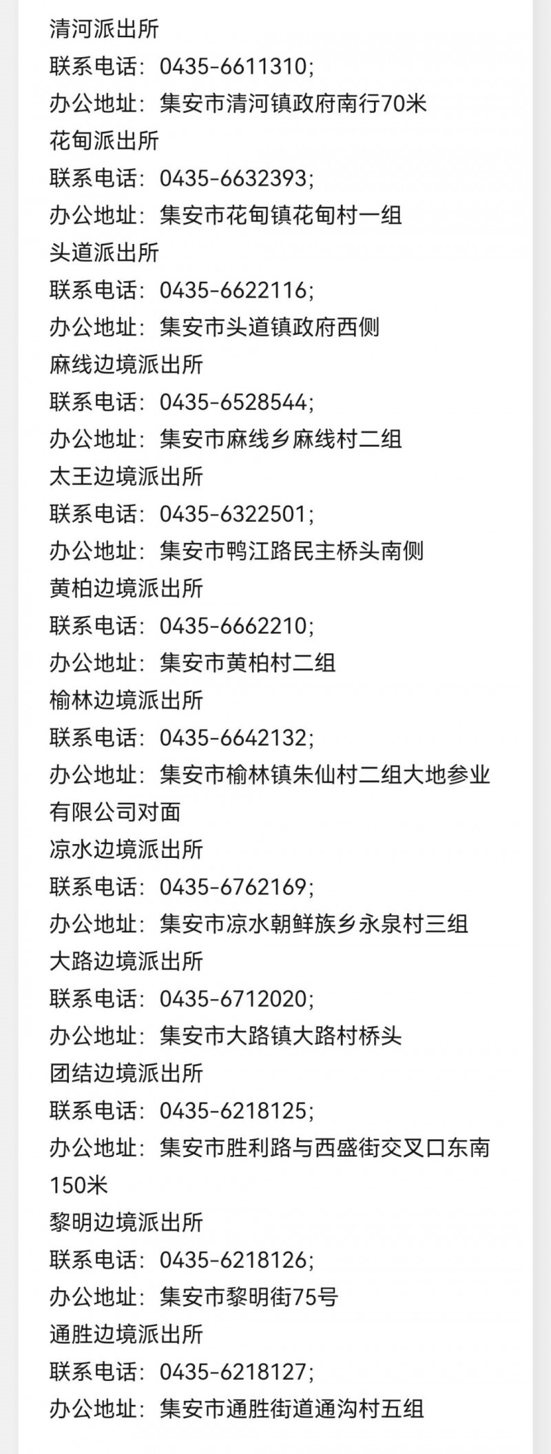 大路边境派出所办公地址:集安市大路镇大路村桥头