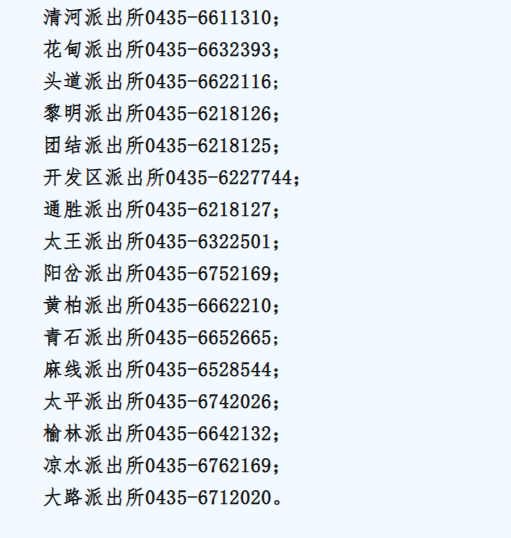 便民黄页:集安市各个基层派出所值班电话号码一览表。