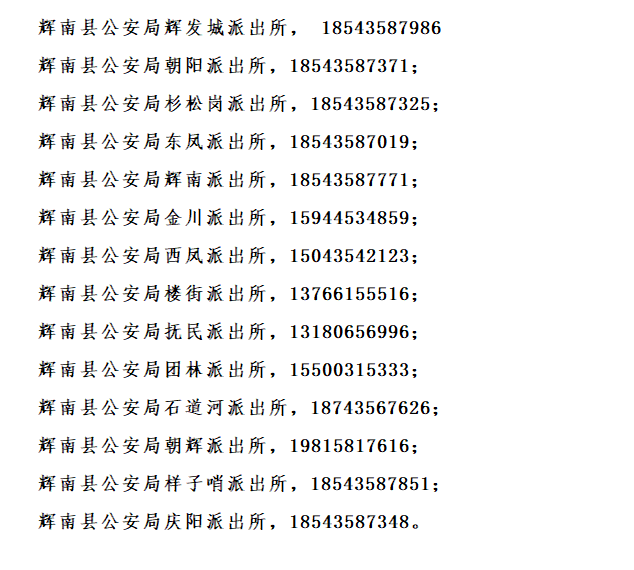 便民服务:辉南县各辖区派出所户籍业务办理咨询电话号码大全表。