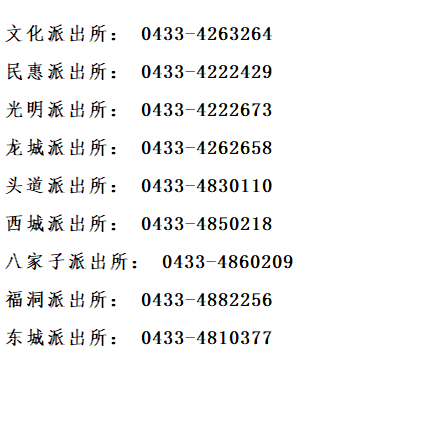 提示:关于延边州和龙市各派出所值班电话号码大全表的信息作出免责提示,本信息来源于延边州和龙市政府网站之公开内容,转载转发的目的在于传递更多便民利民之信息,并不代表本信息赞同其观点和对其真实性负责,也不构成任何其他建议。