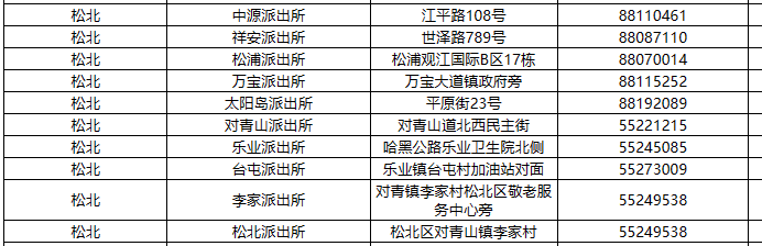 便民电话簿:哈尔滨市松北区各派出所的地址及电话一览表。