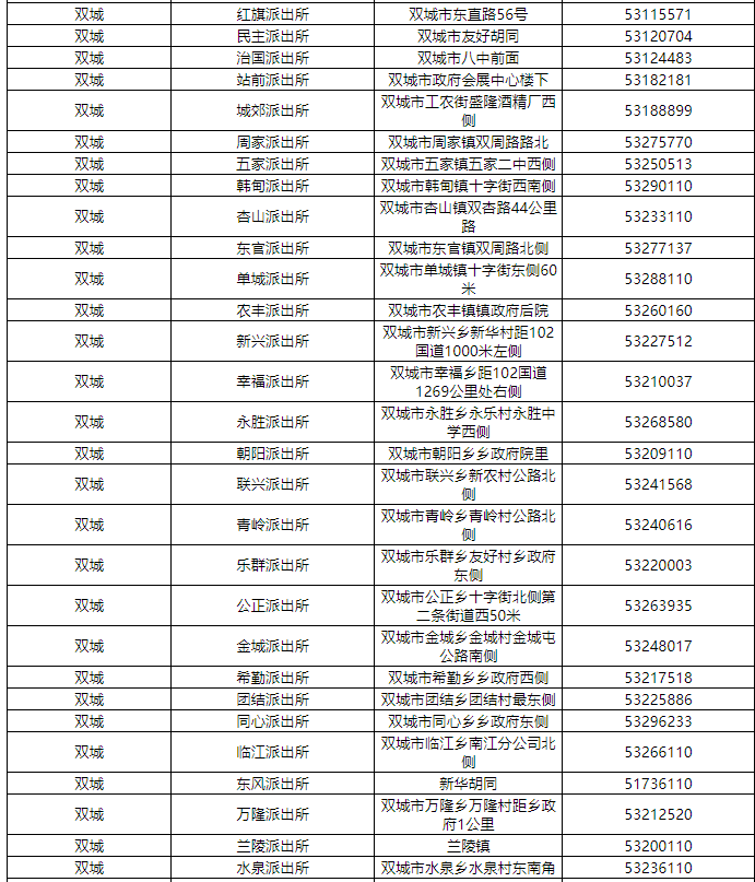 基层派出所电话黄页:哈尔滨市双城区各派出所地址电话大全表。