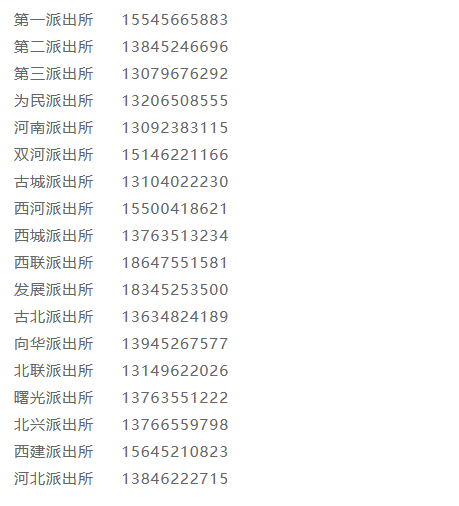 黑龙江克山县各派出所办理身份证业务咨询预约电话号码一览表:第一派出所、第二派出所、第三派出所、为民派出所、河南派出所、双河派出所、古城派出所、西河派出所、西城派出所、西联派出所、发展派出所、古北派出所、向华派出所、北联派出所、曙光派出所、北兴派出所、西建派出所、河北派出所