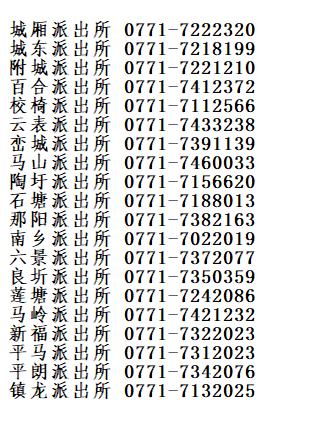 提示:关于广西横州市辖区派出所值班电话号码汇总表的信息作出免责提示,本信息发布的目的仅为向公众提供更多的便民利民服务,是建立在公共服务信息基础上的公益信息传播,其信息来源于当地主管机构的公开内容。信息不排除因随着时间或者相关情况发生原因而发生变化变更,所以本信息仅作参考。