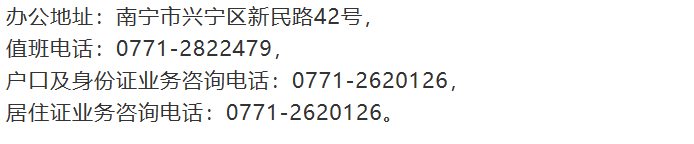 南宁市兴宁区兴宁派出所办公地址和值班电话、户籍电话: