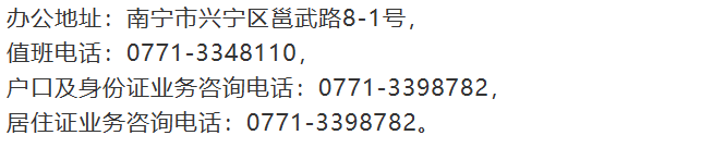 南宁市兴宁区腰塘派出所值班电话和户籍电话:
