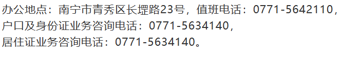 南宁市青秀区长岗派出所地址电话及户籍电话居住证办理电话:
